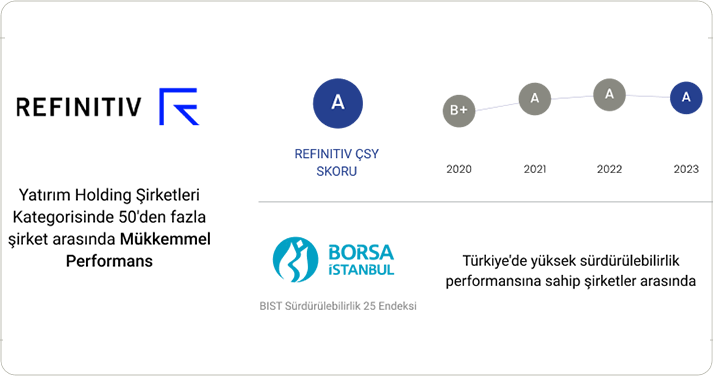 - Sabancı Holding, Refinitiv ESG değerlendirmesinde, Yatırım Holding Şirketleri kategorisindeki 50'den fazla şirket arasında “mükemmel” ÇSY performansı gösterdive önemli sürdürülebilirlik verilerini kamuya açık olarak raporlamada yüksek derecede şeffaflık göstererek "A" derecesinin sahibi oldu.