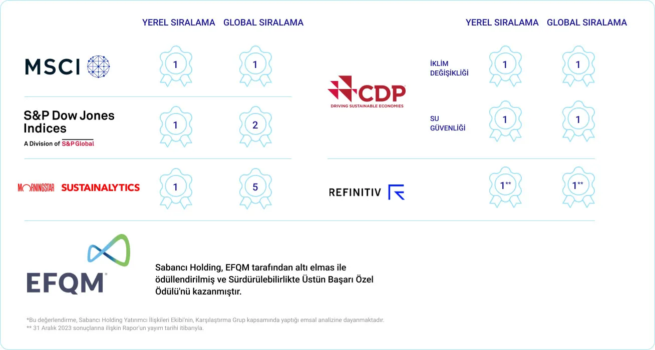 - Sabancı Holding, CDP İklim Değişikliği Küresel A Listesi'nde Türkiye'den yer alan tek yatırım Holding şirketidir.